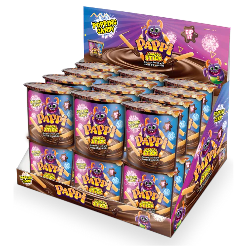 Pappi Sticks & Hazelnut Cream With Choco Bread Sticks Popping Candy – 24 x 55g